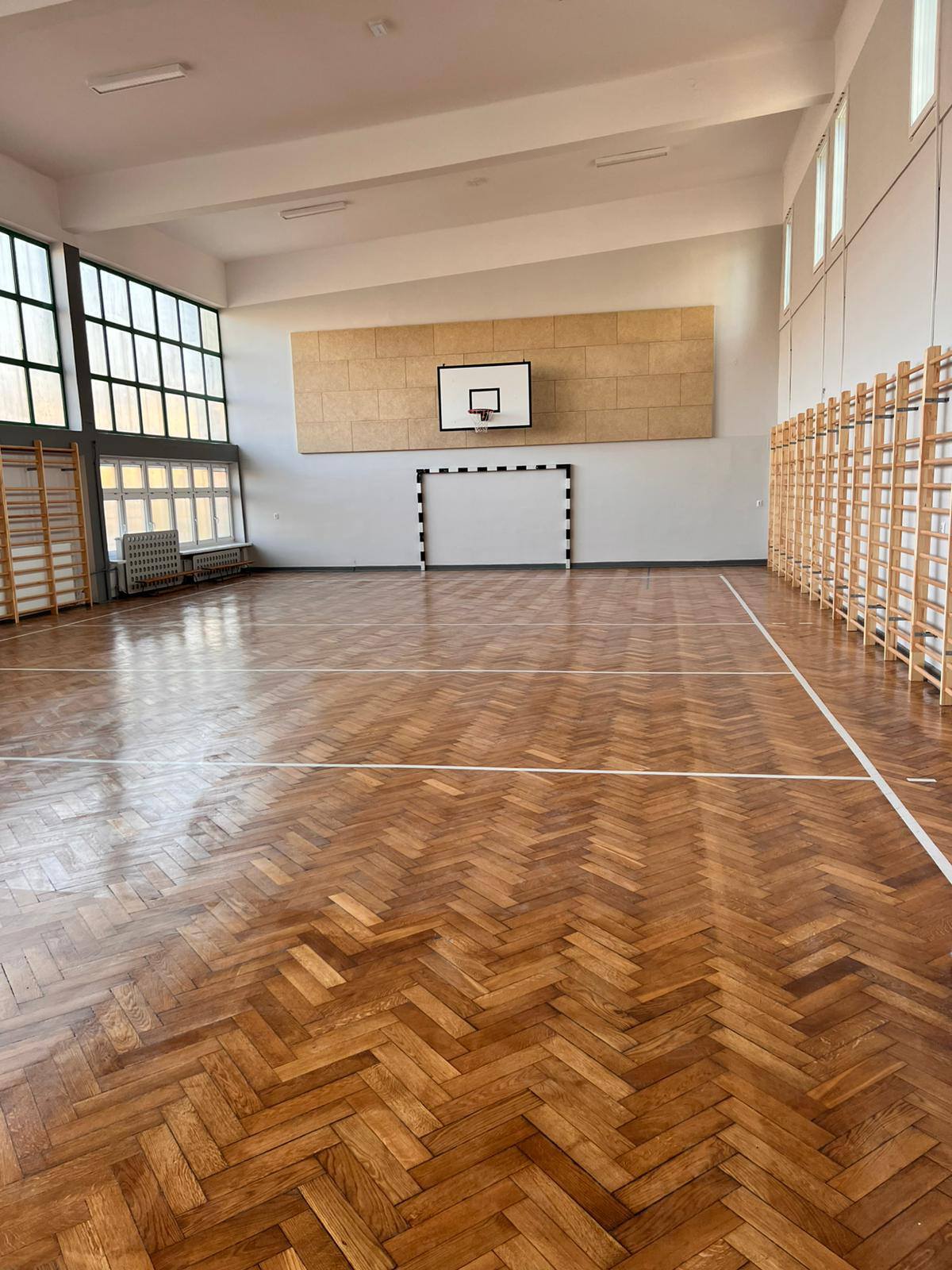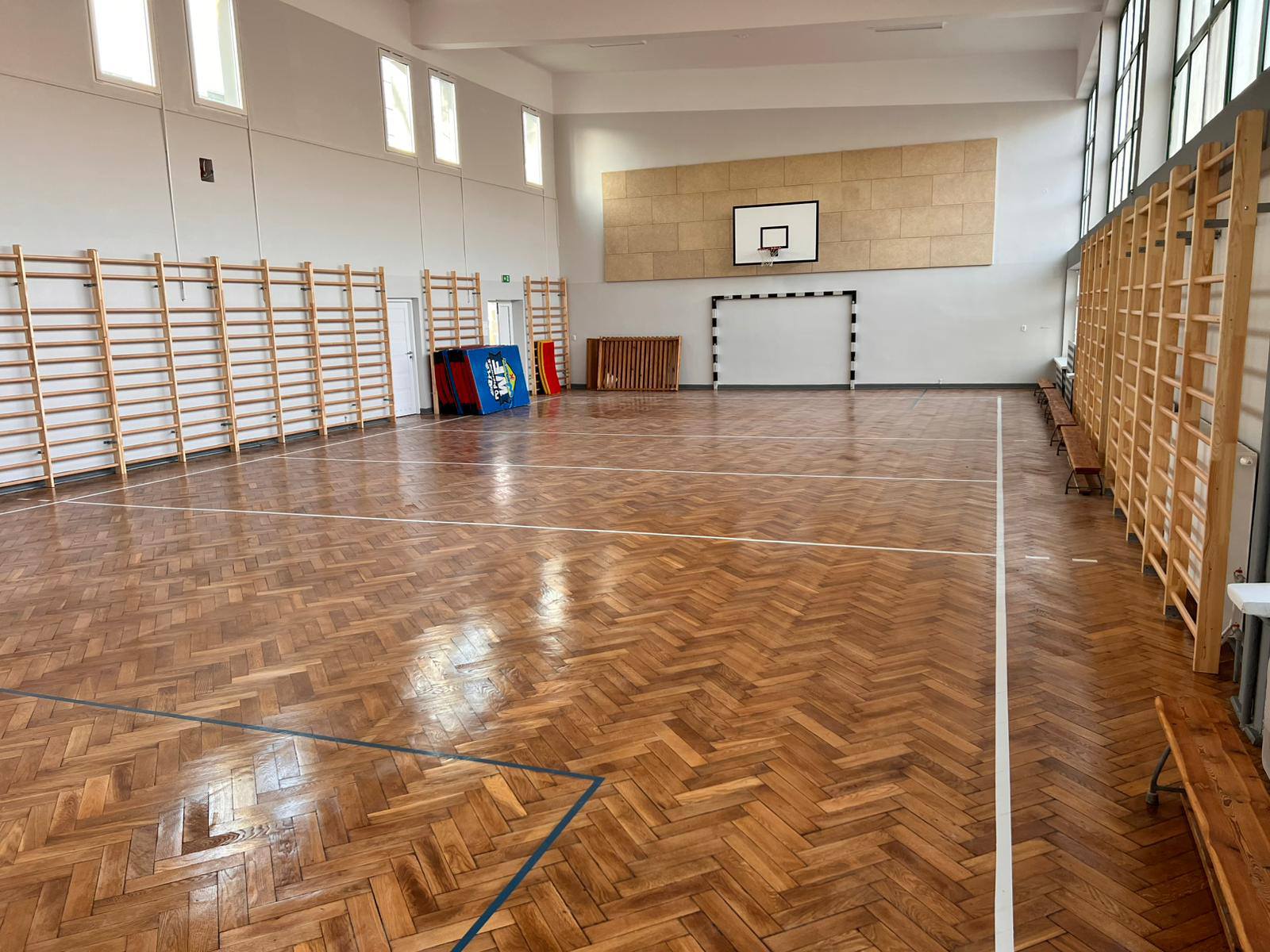Odnowiona nawierzchnia, odświeżone ściany i nowoczesne wyposażenie sprawiają, że sala prezentuje się pięknie i funkcjonalnie. Cieszymy się, że uczniowie już mogą korzystać z niej podczas lekcji wychowania fizycznego i zajęć pozalekcyjnych.